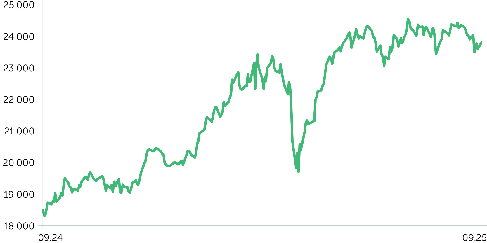С 1 по 5 сентября DAX снизился еще на 1,3%. Котировки индекса за второй день этой торговой недели упали 2,3% на фоне роста доходности тридцатилетних гособлигаций Германии и Франции до максимумов с 2011-го и 2009 года соответственно. Спровоцировать эту динамику мог политический кризис во Франции, где правая партия «Национальное объединение» выразила недоверие правительству, которое было отправлено в отставку несколькими днями позднее. Вероятность досрочных выборов во Франции резко повысилась. Впрочем, через несколько дней доходности упомянутых госбондов развернулись вниз. Важным фактором для ведущих фондовых площадок стали августовские данные рынка труда в США. Число новых рабочих мест вне сельского хозяйства оказалось намного ниже консенсуса, безработица повысилась до четырехлетнего максимума на уровне 4,3%. Отчет Минтруда стал очередным аргументом для снижения ставки ФРС на сентябрьском заседании. В еврозоне вышла уточненная оценка динамики ВВП во втором квартале, зафиксировавшая рост на 0,1% кв/кв и 0,6% г/г. При этом объем промышленных заказов в Германии в июле неожиданно упал на 2,9% м/м под влиянием компонента крупных транспортных средств. Одним из лидеров роста стали акции Adidas (+4,8%). Покупкам способствовало повышение рекомендации Jefferies с «держать» на «покупать» и перемещение в список наблюдения J.P. Morgan.