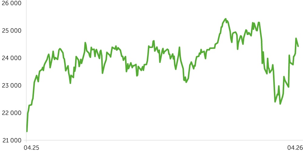 DAX жергілікті даунтрендті күндізгі күрт 5% өсіммен жарып өтіп, 25 мың пункт деңгейіне ұмтылды. Алдағы бірнеше айдағы негізгі сценарий ретінде 23-25 мың тармақты шоғырландыруды санаймыз. Дегенмен, егер V-тәрізді өсім жалғаса берсе және тарихи максимум жаңартылса, индекстің алдағы раллиіне таяу күндері сенім артуға болады.