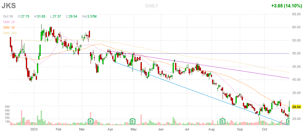 На торгах 30 октября акция JKS стоила $29,54.