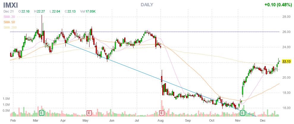 В начале торгов 21 декабря акция IMXI стоила $22,13.