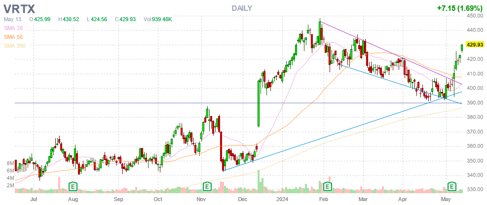 На торгах 14 мая акция VRTX стоила $429,93.