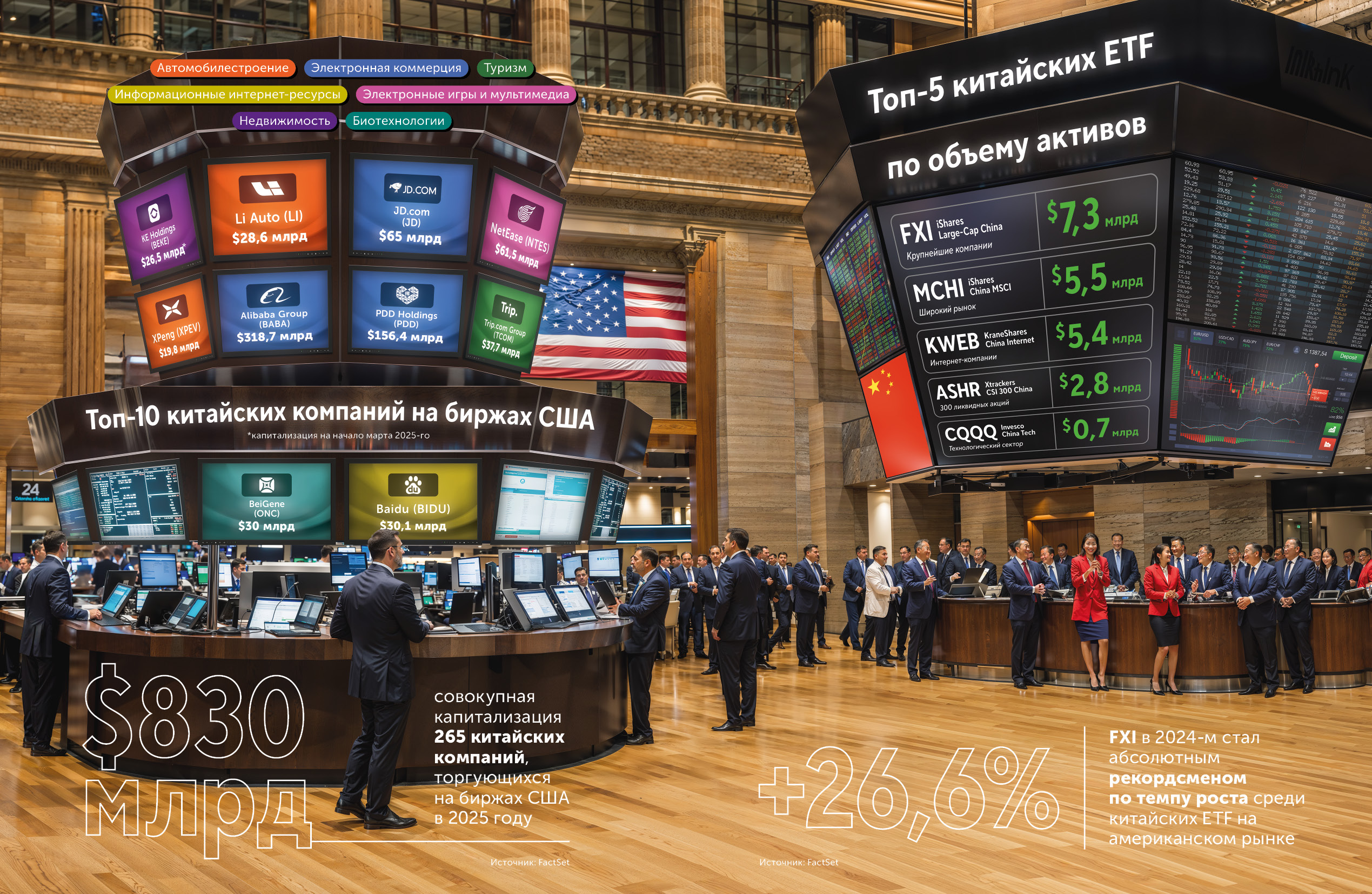 Инфографика. Топ китайских компаний и ETF на биржах США